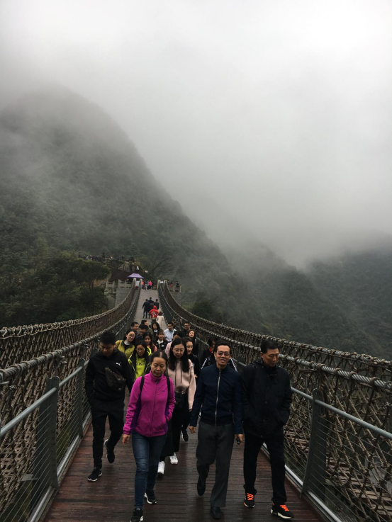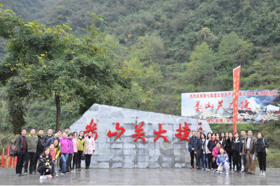 早上7点30分,同志们整理好行装,怀着激动的心情踏上了前往娄山关战役遗址的道路。抵达娄山关后,首先组织观看关于娄山关战役的历史重演,为期一个小时,演员们专注、敬业,演出了当时娄山关战役的艰难及壮烈场景。接着,大家开始走进这婉转曲折的山路,首先看到的是毛泽东主席于1935年在此处触景生情写下的一首词——《忆秦娥·娄山关》。同志们纷纷停下脚步,感受着这首词的无限慷慨悲烈、雄沉壮阔,不禁大声吟诵起来。