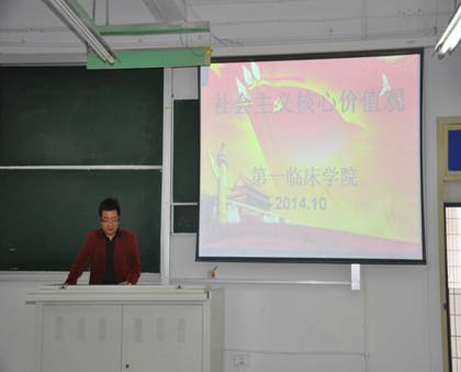 为了进一步用社会主义核心价值观武装和教育青年学生,加强他们对党的认识,帮助和引导他们端正入党动机,第一临床学院2011级党支部于10月30日组织学生开展了社会主义核心价值观教育系列活动。活动由党支部书记杨力组织,辅导员邹青、刘竹芸和59名学生入党积极分子参加了系列活动。