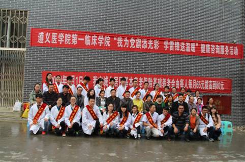 为深入开展党的群众路线教育实践活动,加强在校大学生对基层医疗卫生状况的了解和认识,增强医学生的社会责任感和服务意识,向基层民众更好地普及医疗健康、保健知识与用药常识,2015年4月26日,临床学院党委赴仁怀市鲁班镇开展以“我为党旗添光彩”为主题的基层健康咨询活动。临床学院领导班子成员、关工委钱明章老师、临床学院分团委、学生科负责人、2012级辅导员、附属医院各科室临床医师以及2012级临床专业27名学生志愿者共计46人参与此次活动。
