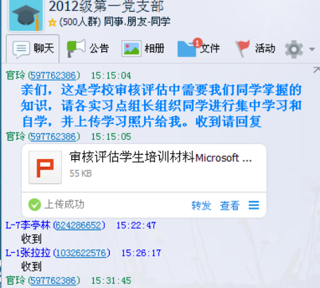 按照学校和第一临床学院党委关于本科教学审核评估考核的指导和要求,第一临床学院2012级两个党支部高度重视、积极组织,根据实习年级学生学习、工作的具体情况,采取了点面结合,集中和分散学习的方式对2012级400多名学生进行了本科教学审核评估考核相关知识的培训。