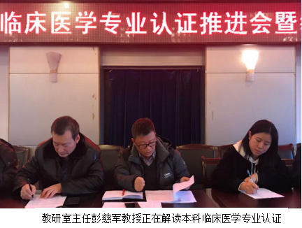 1月8日下午4:30,外科教研室召开了临床医学专业认证推进会暨教学工作会,就本科教学的相关工作进行了动员和部署。教研室主任彭慈军教授主持会议,教研室副主任、各科室教学组长、教学秘书参加了会议。