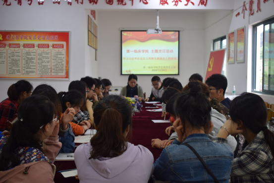 5月2日上午,中共中央总书记、国家主席、中央军委主席习近平来到北京大学考察,并发表重要讲话,在365bet娱乐登录师生中引起了强烈反响。第一临床学院于2018年5月4日召开了“学习贯彻习近平总书记在北京大学师生座谈会上的重要讲话”,传达和学习总书记的重要讲话。临床学院党委副书记杜娟、学生党支部书记罗治宇、年级辅导员李雪以及学生会干部、各班班长和团支书40余人参加。