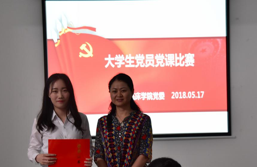 第一临床学院党委副书记杜娟总结指出,比赛选手选题新颖、技巧娴熟、风格多样,展现了青年学生党员的实力与风采。她要求各支部多层次、多维度、全方位开展“新时代、新思想、新论断、新征程和新使命”宣讲,进一步贯彻党中央推进“两学一做”学习教育常态化、制度化的要求,不断创新党课形式,增强党课实效性,开创基层党建工作新气象。