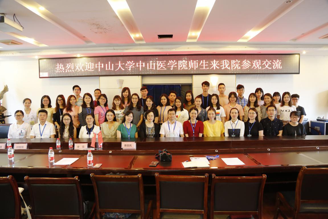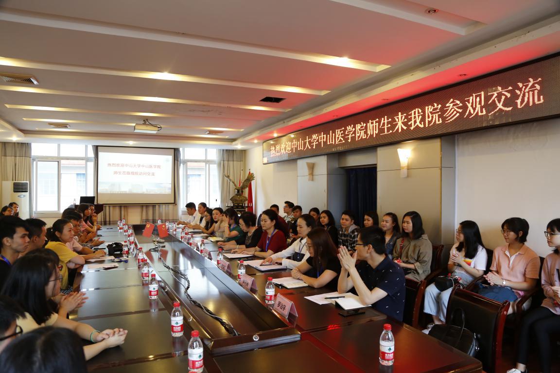 2018年6月22日,中山大学中山医学院师生一行18人到第一临床学院参观交流。365bet娱乐登录附属医院副院长陈琦,第一临床学院党委副书记杜娟、办公室主任曹恩凤、学生科科长罗映红、分团委副书记李同秘、教务科李昱锋,365bet娱乐登录国教学院辅导员李雪、第一临床学院辅导员罗治宇、叶栋恒、李雪以及国教学院学生代表、临床医学学生代表、住培学员代表等25人参加交流会。