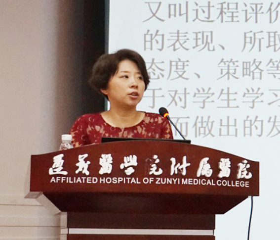 在培训会上,人事处副处长张骏从国家及省级层面对住院医师规范化培训相关制度进行解读。同时为使参培老师更加了解国家对住培专业基地的要求,张骏副处长对专业基地评估指标进行了深入分析;规培科科长杨敏详细介绍了如何在医学教学中应用形成性评价;全科医学科主任肖雪对如何培养住院医师的临床思维展开了丰富的讲解;临床技能实验室主任杨春丽从技能培训到技能考核进行了介绍。最后获得2015年度全国百名“住院医师心中的好老师”称号的妇产科教研室主任王东红跟大家分享了住培的教学管理与出科考核的优秀经验。