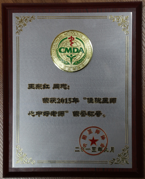 2016年1月9日,全国医师年会上,评选出的100名“住院医师心中的好老师”接受表彰,我院妇产科王东红教授名列其中,荣获全国百名“住院医师心中的好老师”荣誉称号。