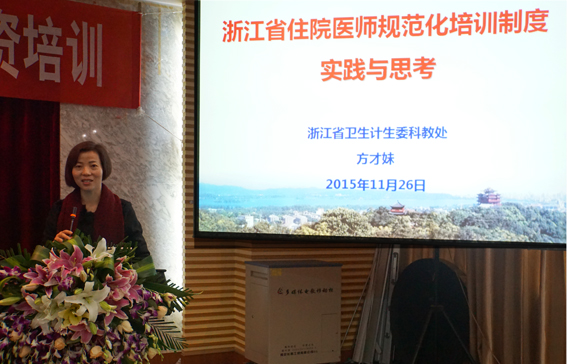 在培训会主会场上,国家卫生计生委科教司王波主任科员首先作了《国家住院医师规范化培训政策解读》报告,他从住院医师规范化培训制度出台背景、制度内涵、当前工作进展、国家层面下一步工作计划四个部分进行详细介绍,并提出在人事政策、经费保障和学位衔接等方面将采取的进一步措施,大力推进医疗卫生人才建设,打造出均质化的优秀医师队伍。浙江省卫生计生委科教处副处长方才妹作了《浙江省住院医师规范化培训制度与基地建设实践》报告,她主要介绍了浙江省在开展住院医师规范化培训过程中的具体做法,如何强化以信息化建设为抓手、以培训基地和协同基地构成“基地联合体”保障全省住院医师规范化培训顺利运转。随后,贵州省卫生计生委科教处处长陈莉作了《贵州省住院医师规范化培训工作推进情况》报告,她主要介绍了贵州省在住院医师规范化培训工作开展过程中制度建设、制度落实、全省规培督导检查等内容,并针对即将召开的全省规培工作推进会、信息化建设、配套保障措施以及探索专业型研究生与规培有机衔接等问题进行重点解读。陈莉处长还提到,目前浙江省与贵州省在住院医师规范化培训工作中形成对口帮扶,我们将借鉴浙江省的优秀实践经验、结合贵州省实际情况,积极推进我省规培工作。