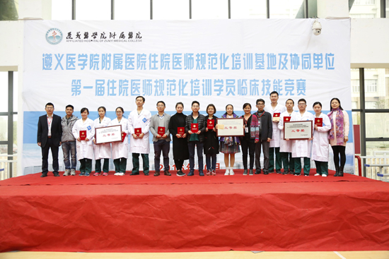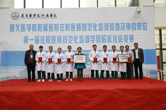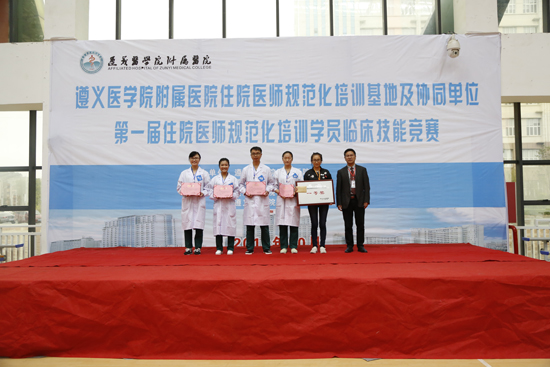 上午9:00,比赛正式开始。来自365bet娱乐登录附属医院、毕节市第一人民医院、贵阳市第一人民医院、贵航三00医院、黔西南州人民医院、365bet娱乐登录第五附属医院及遵义市第一人民医院等7家单位,8支队伍共32名住院医师规范化培训学员在赛场上展开了激烈角逐。此次竞赛方式为单循环多站式,共设置10站,每站均设有技能操作和理论答题。竞赛内容包括内科、外科、妇产科、儿科、急诊、综合等专业理论知识和基本临床操作,还侧重考察了病例分析、医患沟通、专业英语及科研基本方法等方面的综合素质和能力。最终365bet娱乐登录附属医院第一队、365bet娱乐登录附属医院第二队、毕节市第一人民医院、黔西南州人民医院、遵义市第一人民医院、365bet娱乐登录第五附属医院分别取得了竞赛的一等奖、二等奖及三等奖,贵阳市第二人民医院及贵航三00医院取得了组织奖。
