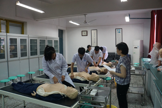 2016年8月29日下午16:30,理论考试在学校阶梯教室进行,与此同时,专家组分为两组,一组到行政楼二楼会议室抽取学员轮转病历,另一组到临床技能中心对学员专业技能进行考核。
