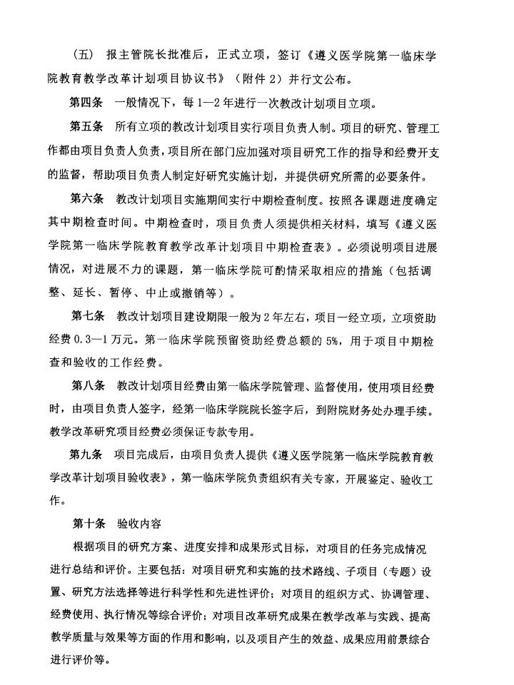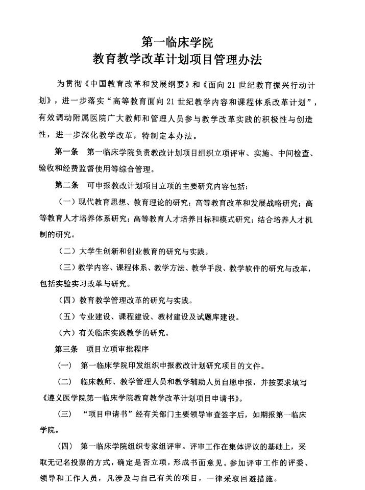 第一临床学院教育教学改革计划项目管理办法
