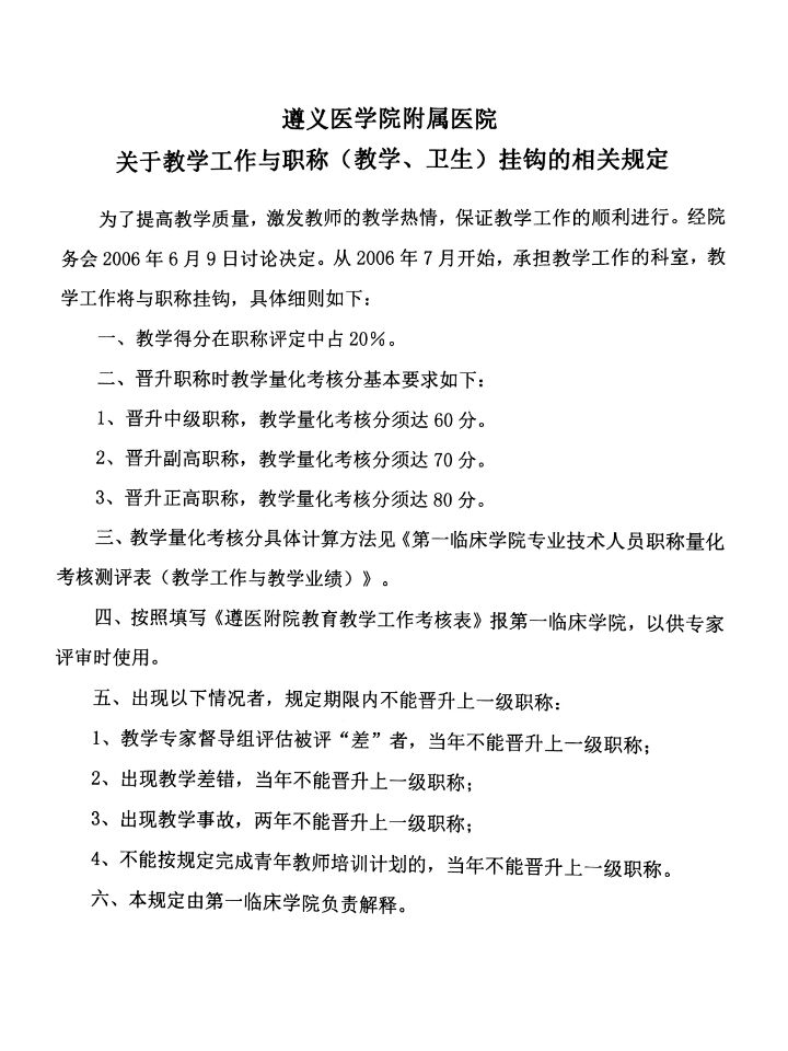 365bet娱乐登录附属医院关于教学工作与职称(教学、卫生)挂钩的相关规定