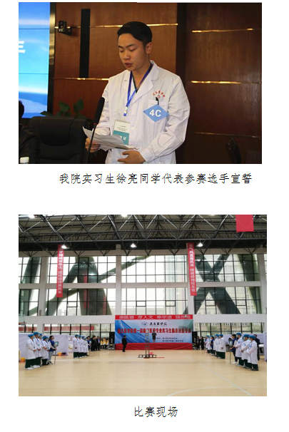 我院分管教学副院长陈琦教授、常务副院长徐平教授、临床技能实验教学中心主任吴宗德教授等领导及13名裁判、8名参赛选手、观摩教师参加了开幕式和闭幕式。我院急诊科教研室邓崇第教授代表裁判员宣誓,我院学生徐亮同学代表参赛选手宣誓。比赛全程由我院教务科陆超老师主持,由巩亮副教授和刁英副教授在竞赛视频转播教室现场讲解。
