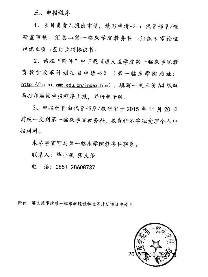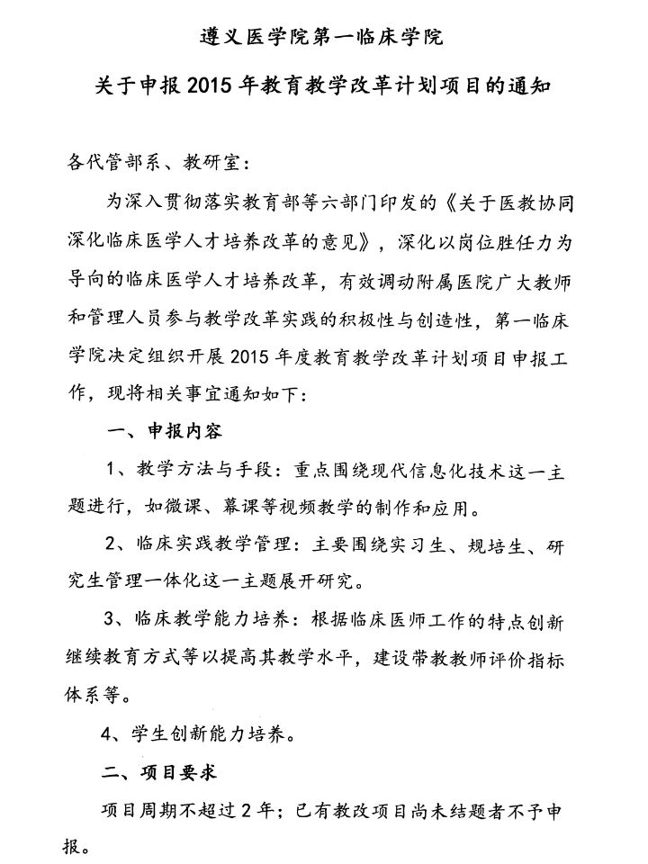 365bet娱乐登录第一临床学院关于申报2015年教育教学改革计划项目的通知