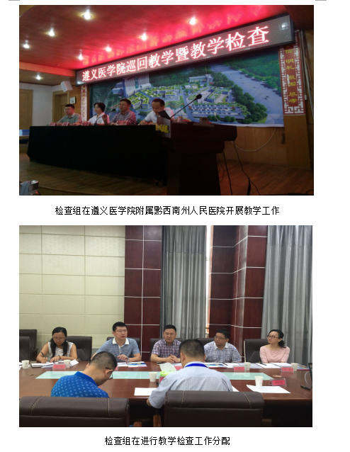 为进一步加强临床实习教学管理,提高我校临床实习教学水平和管理水平,第一临床学院根据《365bet娱乐登录关于开展2016年度毕业实习教学检查暨巡回教学的通知》要求,于2016年7月17日至8月19日分别到贵阳、成都、黔西南州和遵义片区开展工作。检查组由徐平副院长和学校教务处覃晓龙副处长带队,成员由我院赵勇教授(教务科科长)、陈艳教授、曹云涛教授、胡琼教授、张军教授、李权教授、路健副教授、彭昌副教授、王正龙副教授、邹学坤副教授、张振东副教授,教务科工作人员及学生管理人员组成。