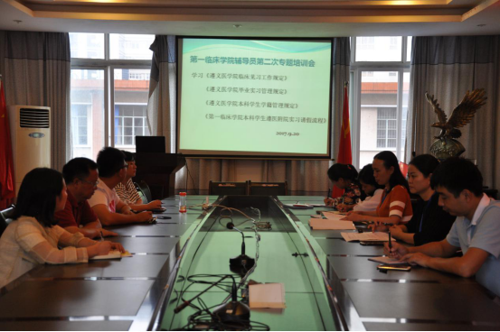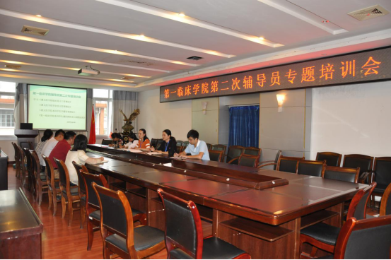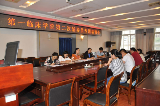 为深入贯彻落实全国高校思想政治工作会议精神,加强辅导员队伍培养培训工作,提高辅导员队伍专业化、职业化水平,促进学生工作再上新台阶。第一临床学院于9月20日下午16:00在行政楼五楼会议室举行本年度第二次辅导员专题培训会,主讲人为临床学院学生科科长罗映红老师。学院党委副书记杜娟、分团委副书记李同秘以及2013级、2014级全体辅导员老师参加了本次培训。